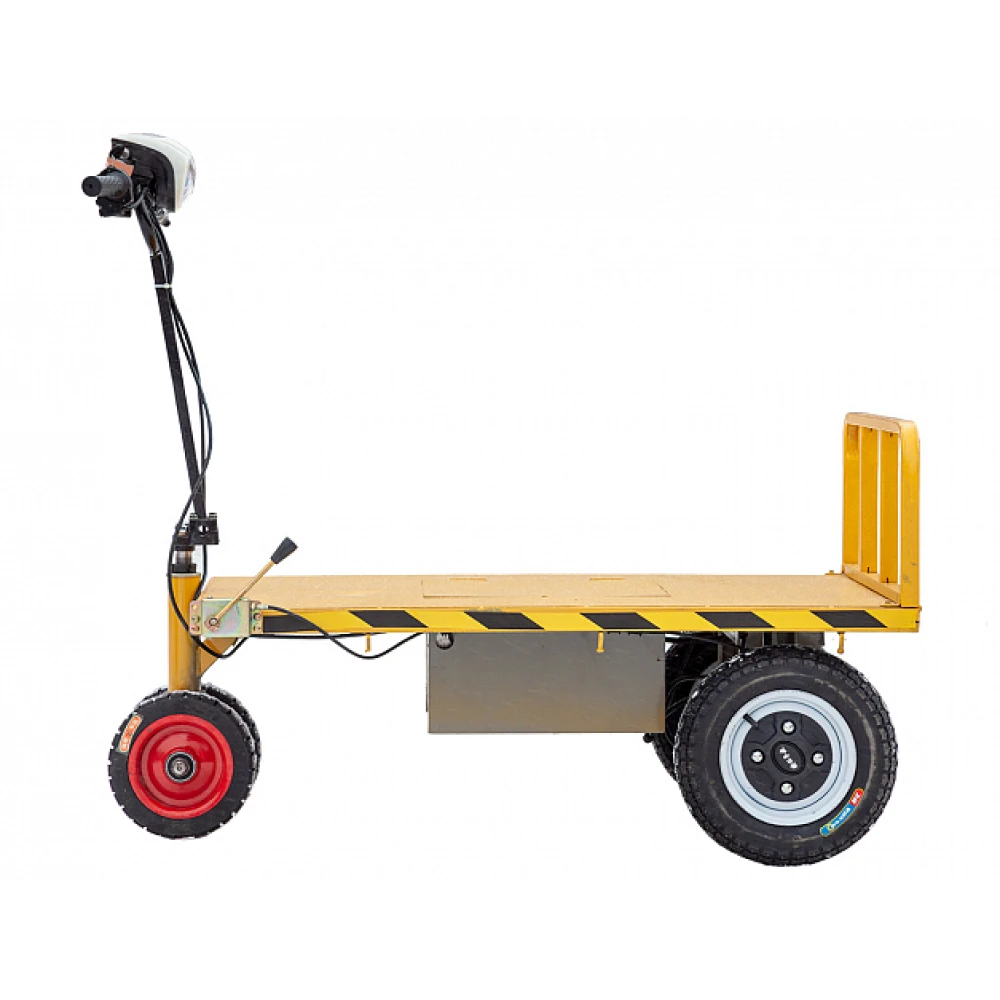 Также тележка востребована при выполнении строительных работ, на дачных участках, в туристических зонах и базах отдыха. Техника необходима везде, где требуется перевозка груза с минимальными трудозатратами. При мощности электродвигателя 800 Вт максимально возможная скорость достигает 25 км/час и преодоление дистанции на одной подзарядке – 20 км. Максимальная грузоподъемность позволяет перевозить грузы до 300 кг. Отличная вместимость обеспечена идеальными размерами платформы - 1200 х 800 мм. Модель оснащено мягким эргономичным седлом. Рулевая часть – прорезиненными нескользящими грипсами и информационным дисплеем, предоставляющим работника важные технические показатели. Заказать товар оптом и в розницу быстро предлагает наш интернет-магазина. Телефонный звонок или общение с менеджером в онлайн-чате ускорит процесс оформления заказа.