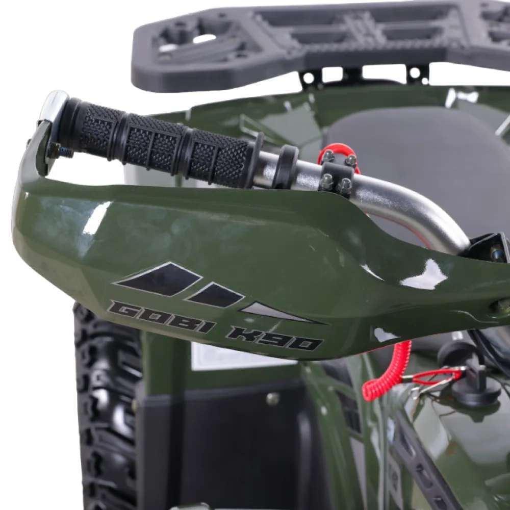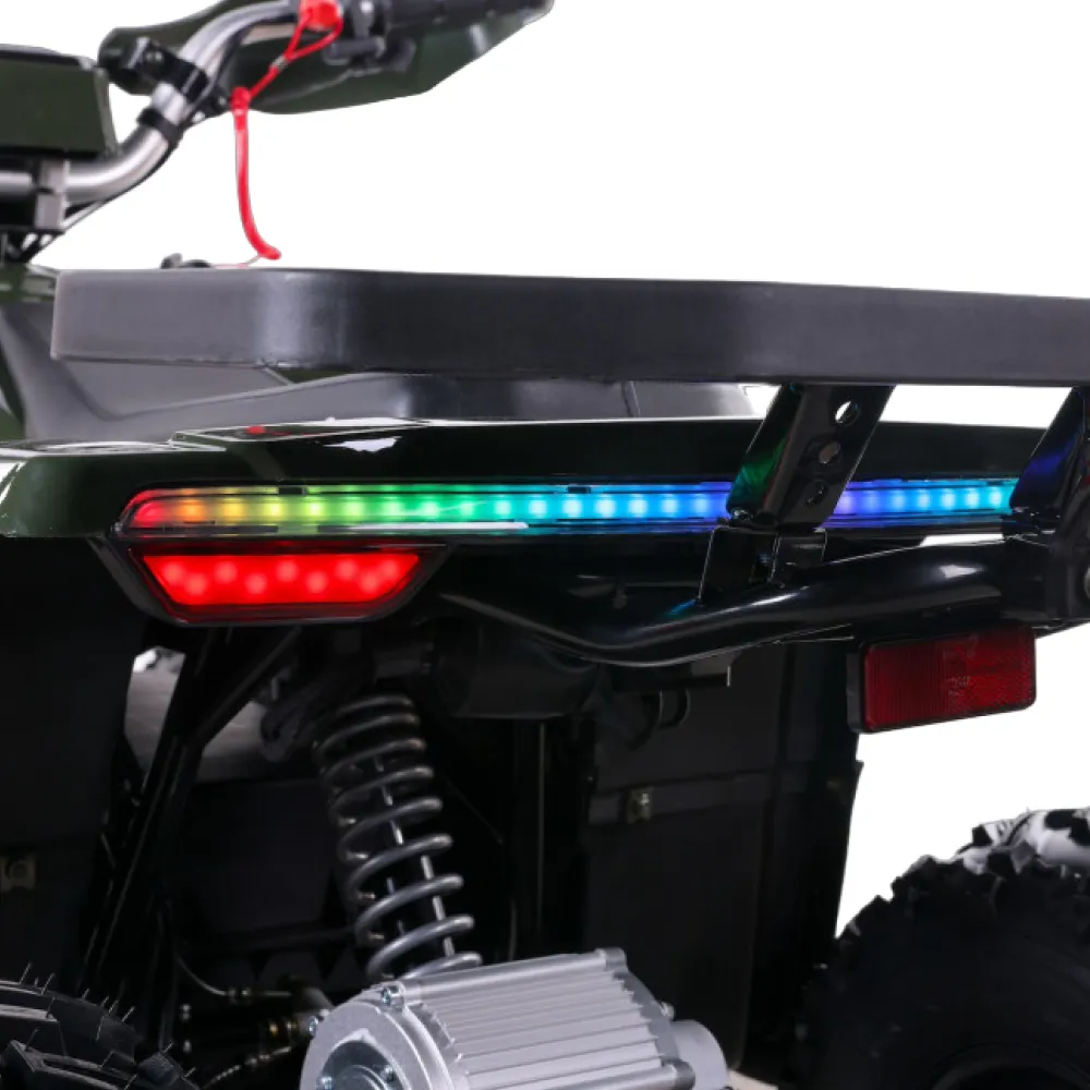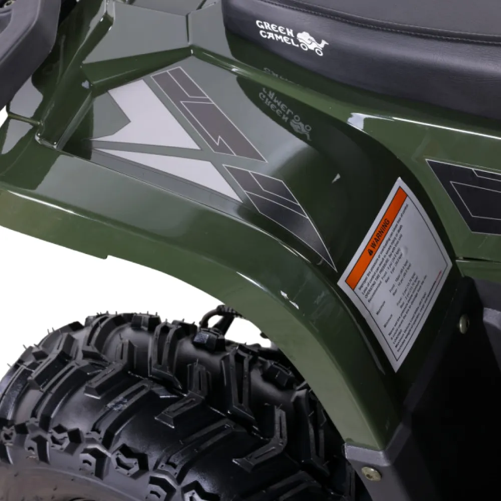 Электроквадроцикл GreenCamel Гоби K90 (48V 750W R7 Дифференциал) Tao LUX Зеленый - это великолепный выбор для молодых авантюристов в возрасте от 5 до 10 лет. С мощностью в 750 Ватт, этот квадроцикл способен развивать скорость до 35 км/ч, предоставляя вашему ребенку незабываемые моменты радости и веселья.