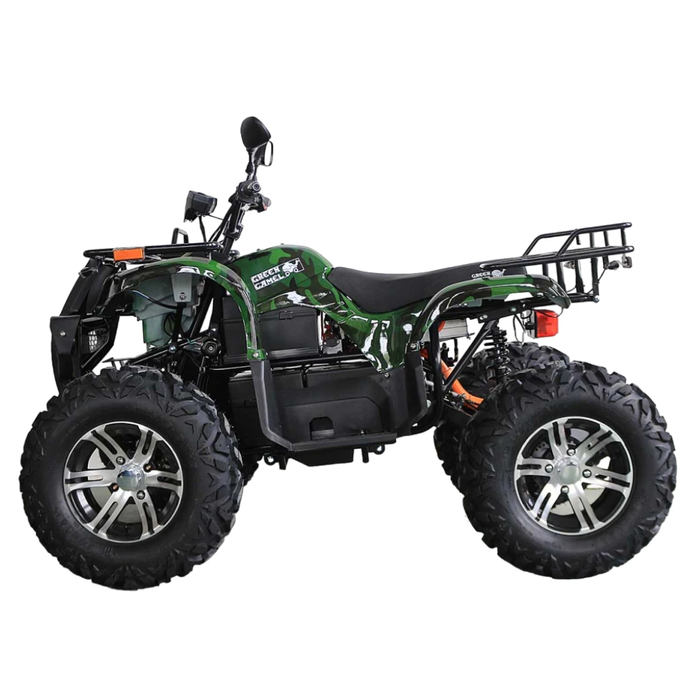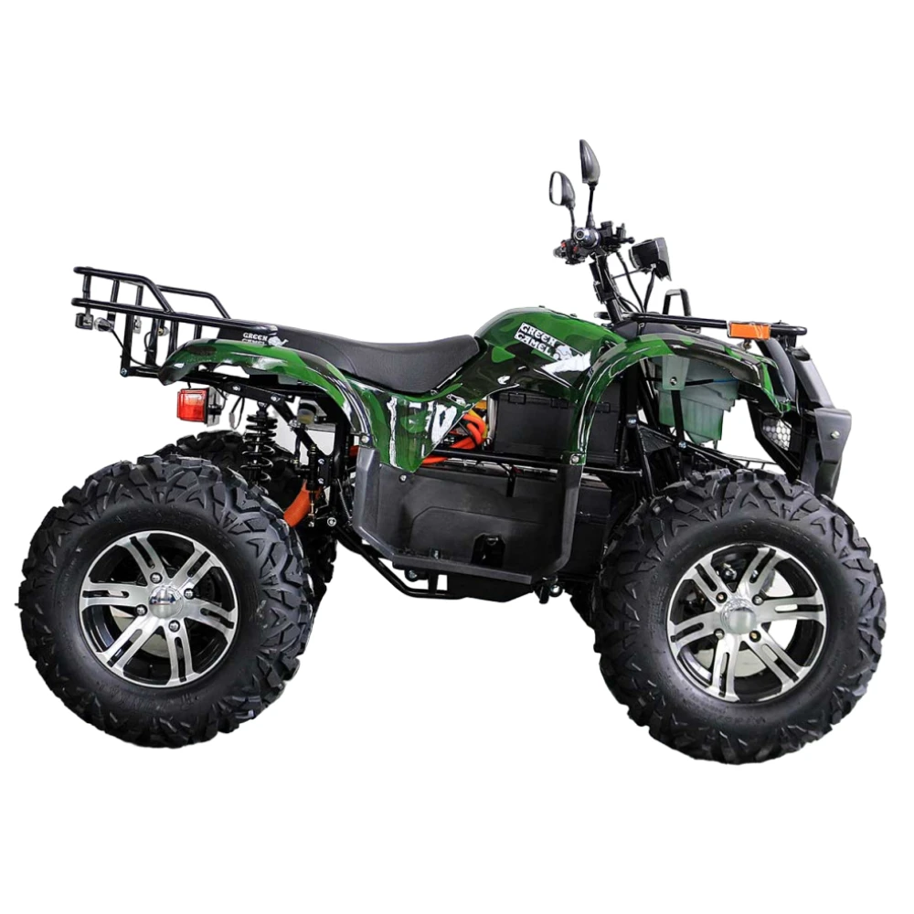 Электроквадроцикл достигает скорости до 50 км/ч. Батарея на 72V 3000W может проехать до 60 км на одном заряде. R12 alum дифференциал улучшает проходимость и стабильность на всех типах поверхностей. А зеленый цвет добавляет красоты и оригинальности.
