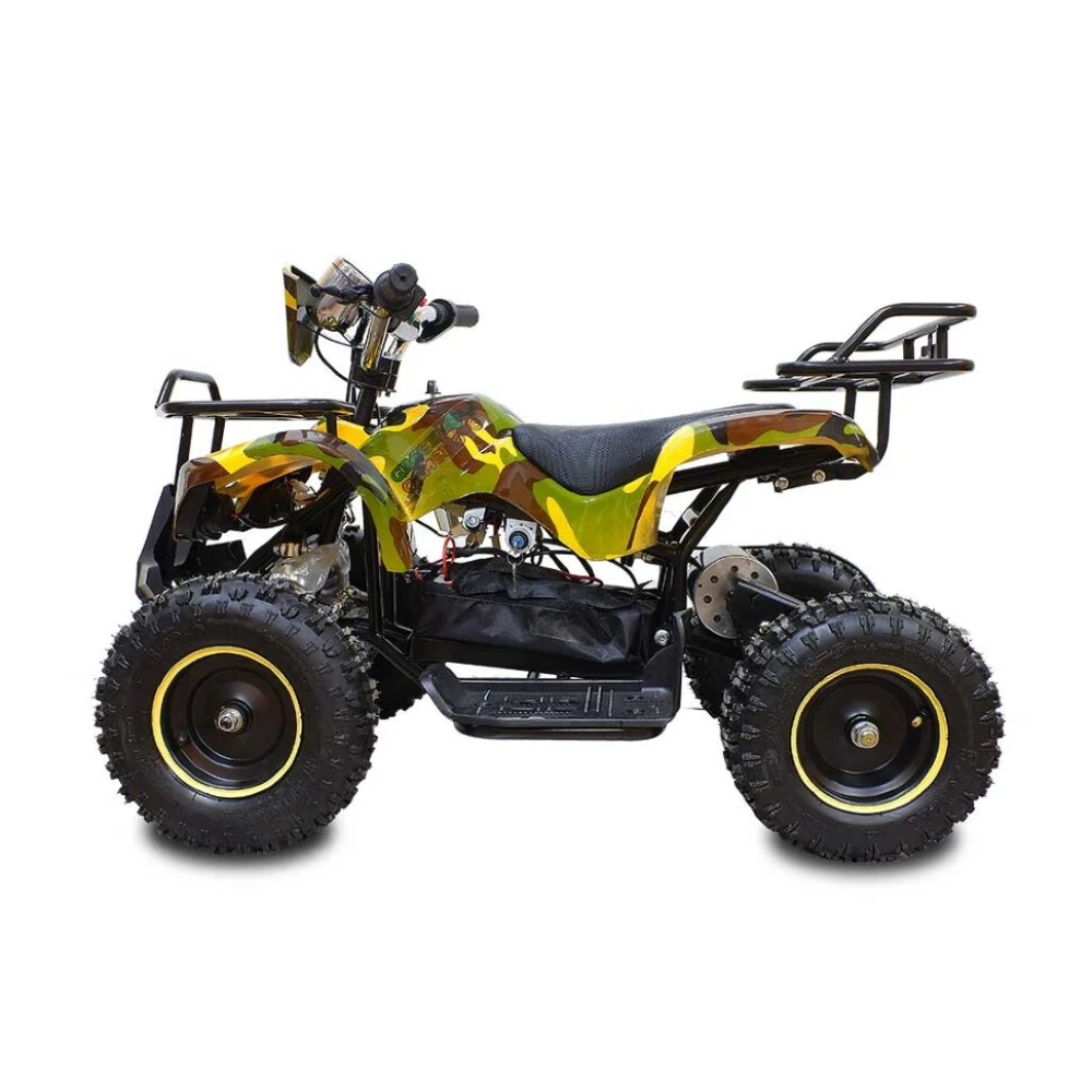 Расцветка данной модели называется «армейский жёлтый» – это сочетание ярких бойких цветов, которые нисколько не потеряют в глазах вашего ребёнка своей брутальности и крутости.  Юный автолюбитель сразу полюбит этот квадроцикл.