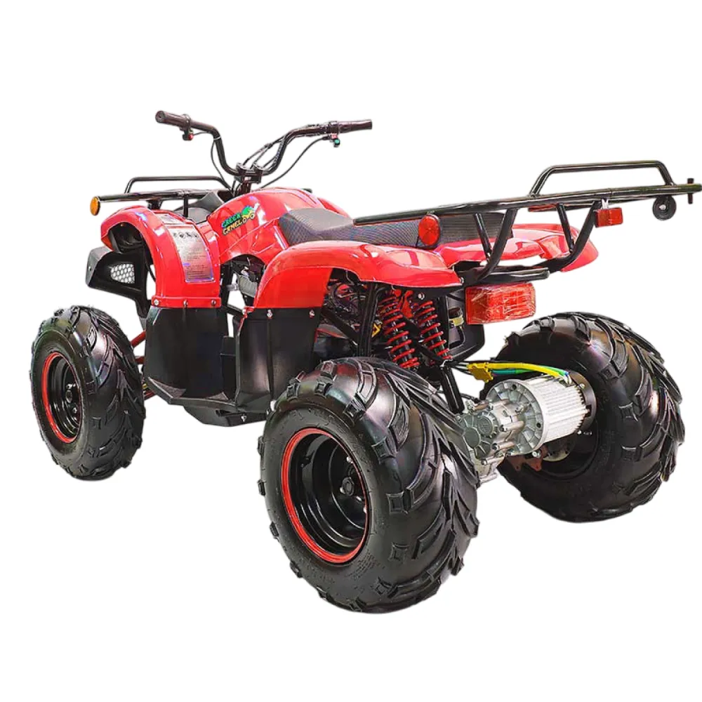 У GreenCamel Caxapa A1520 два вида батарей, можно приобрести квадроцикл с штатной батарей 20 Аh SLA GEL, у которой запас хода 40 км. Ресурс 20 тыс. Км, время зарядки 8 часов. В комплектации есть более мощная батарея 42 Аh Boston, запас хода 80 км. Ресурс батареи 100 тыс. Км, время заряда 16 ч. У квадроцикла отсутствует спидометр, и шнур безопасности на руле.