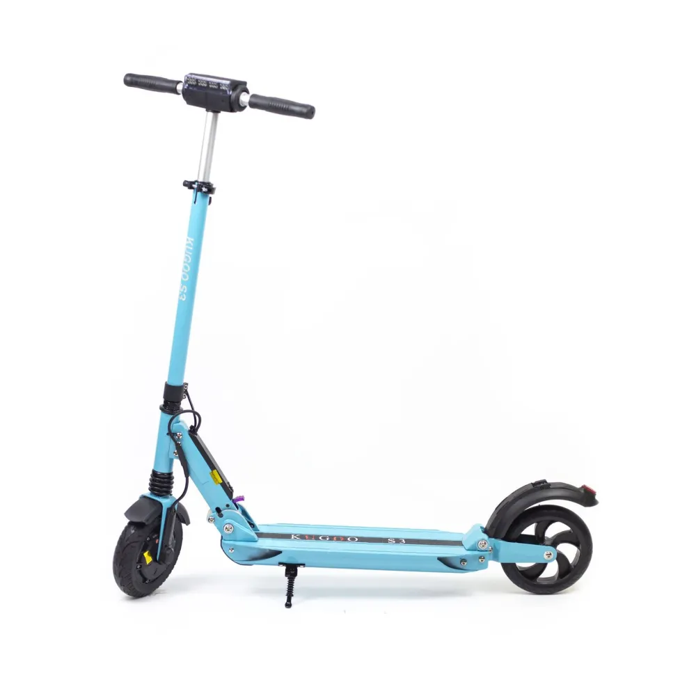 Электросамокат Kugoo S3 синего цвета б/у выполнен из алюминия высокой прочности, в связи с чем самокат обладает небольшим весом всего 11 кг. Конструкция электросамоката крепкая и может выдержать вес до 120 кг. На самокате могут кататься как подростки, так и взрослые. Электросамокат с легкостью развивает скорость до 27 км/час, при этом спокойно преодолевая небольшие возвышенности до 25 градусов.