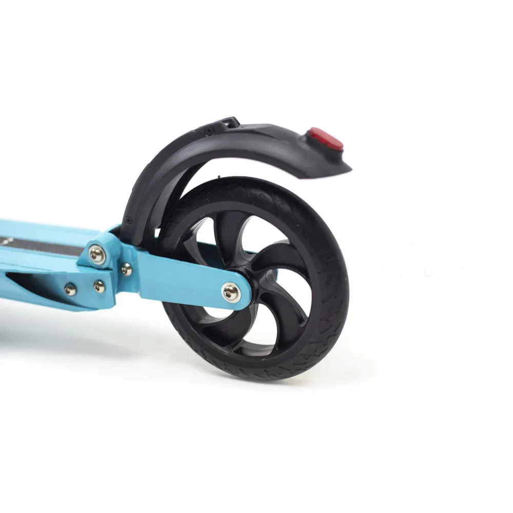 Электросамокат имеет два тормоза как на переднем, так и на заднем колесе. Уверенная сцепка с дорожным покрытием обеспечивает не просто мягкое катание, а уверенное преодоление неровности дорожного покрытия. Аккумулятор самоката заряжается от сети, от полного разряда до 100 % необходимо заряжать четыре часа. На одном заряде электросамокат может проехать до 26 км.