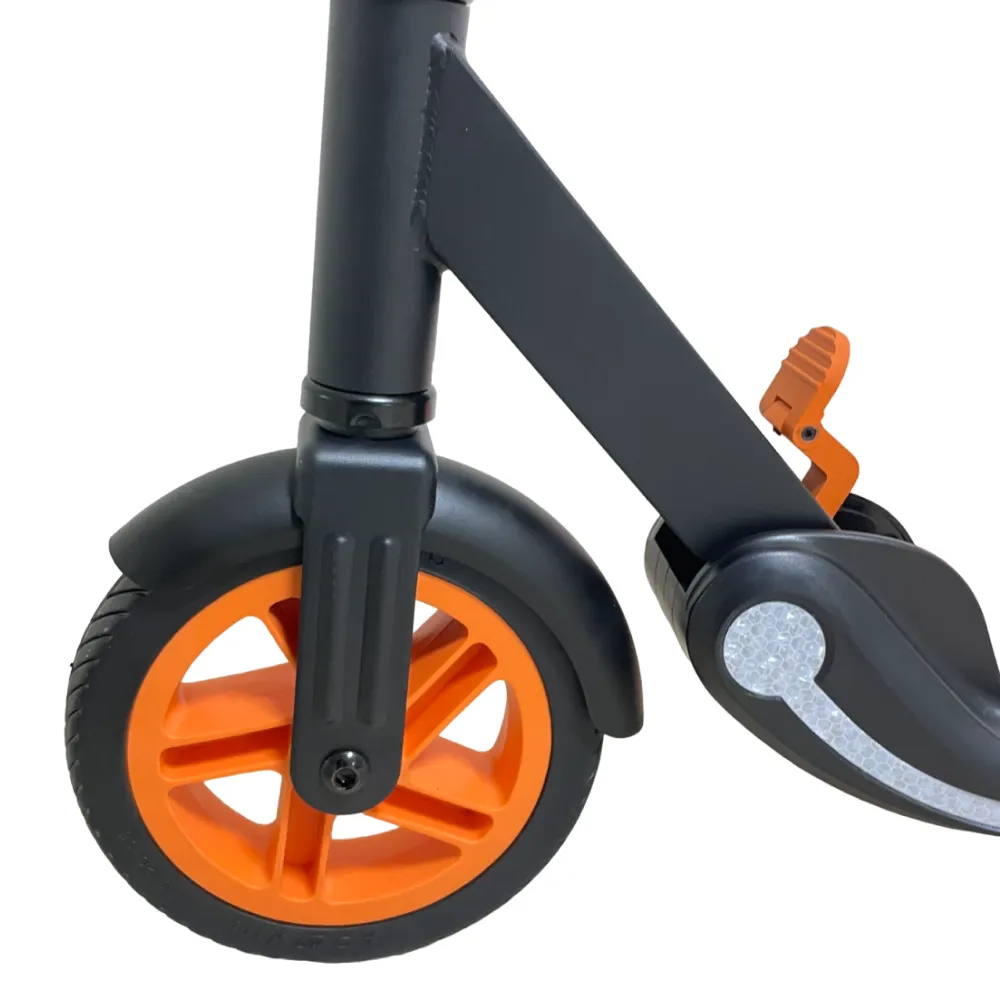 Электросамокат выполнен в лаконичных цветовых оттенках. На видимой части имеется светоотражающая полоса, делающая технику заметной в вечернее время. Модель предназначена для пользователей возрастной категории 6-12 лет. Технические характеристики (мощность двигателя – 100 Вт) допускает развитие скорости до 15 км/час. При необходимости райдер может пользоваться 1 из 3 скоростных режимов.