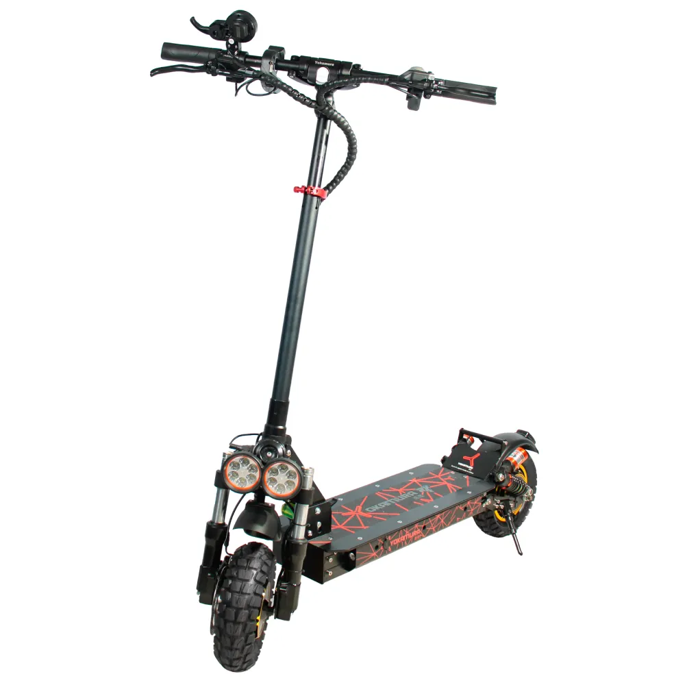 Самокат YOKAMURA RX1 на одном заряде аккумулятора преодолевает расстояние 60 км. Дисковая тормозная система на переднем и заднем колесе позволяет совершать маневры, амортизация делает движение электросамоката плавным даже на не ровной дороге. Производитель предусмотрел внешнее освещение для передвижения в темное время суток.