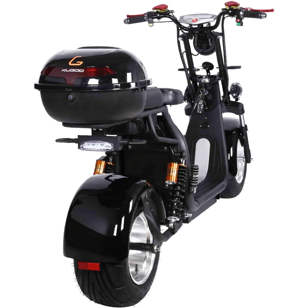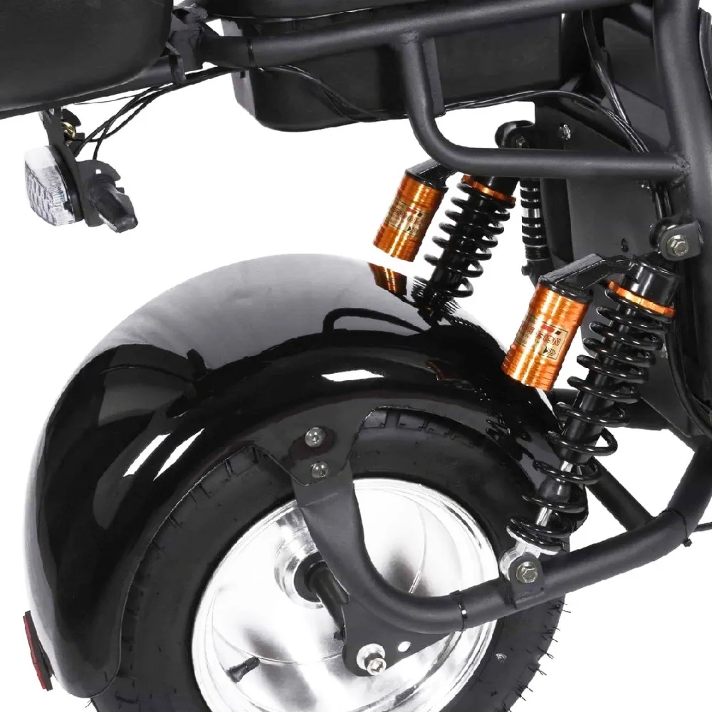 Электроскутер Citycoco Kugoo C6 – обновленный вариант бренда занимает лидирующие позиции в продажах. Брутальный кричащий дизайн заинтересовал райдеров-экстремалов и любителей рыбалки. Широкая отлично сцепляемые шины обещают отличную проходимость и отсутствие проблем в дороге. Техника создана для езды по бездорожью, не разочарует при преодолении небольших препятствий и путешествии по лесным тропинкам.