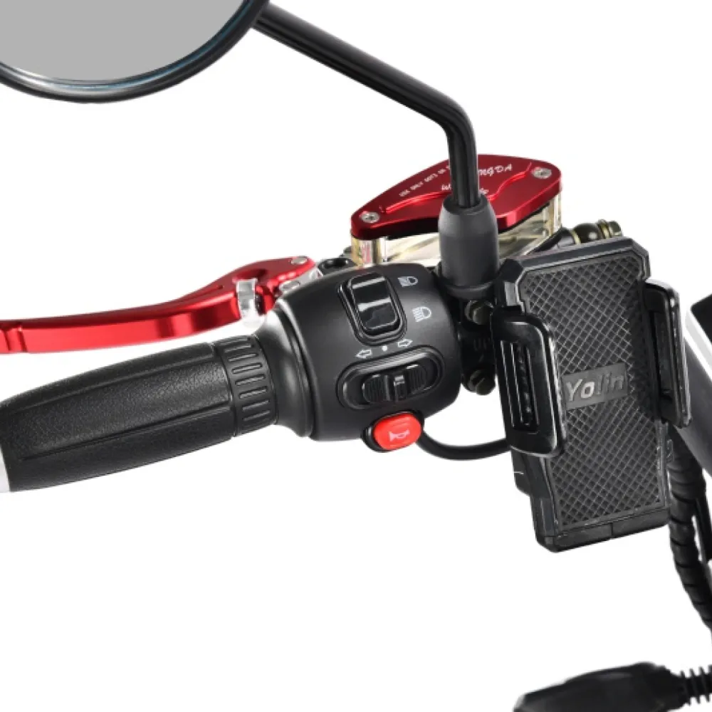 Модель оснащена литий-ионным аккумулятором емкостью 21 Ач напряжением 60 В. Быстрый разгон 24-61 км/час обеспечивается мощным движком 2500 Вт. Запас хода рассчитан до 60 км, ресурс АКБ восполняется за 7 часов. Стальная рама свободно выдерживает взрослого пользователя массой до 260 кг. Комбинированная подвеска мотоциклетная с пружинно-масляным типом гарантирует преодоление любых дорожных преград. Руль регулируется по высоте. Сидение имеет правильную форму. Пользователю придутся по душе дисковые тормоза на гидравлике, которые обеспечивают быструю остановку. Фара линзового типа со стробоскопами хорошо освещают дорогу в темное время суток. На руле расположен современный бортовой компьютер, отображающий основные технические параметры тс. Для быстрого оформления заказа предлагаем связаться с нашим менеджером по телефону.