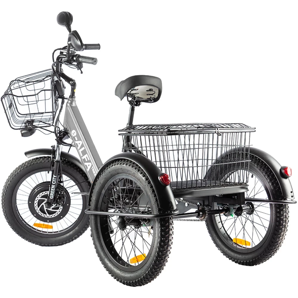 Представляем вам серебристый электровелосипед-трицикл Eltreco Green City e-ALFA Trike! Сочетание элегантного дизайна и передовых технологий делает этот электрический велосипед идеальным выбором для комфортной и стильной езды по городу.