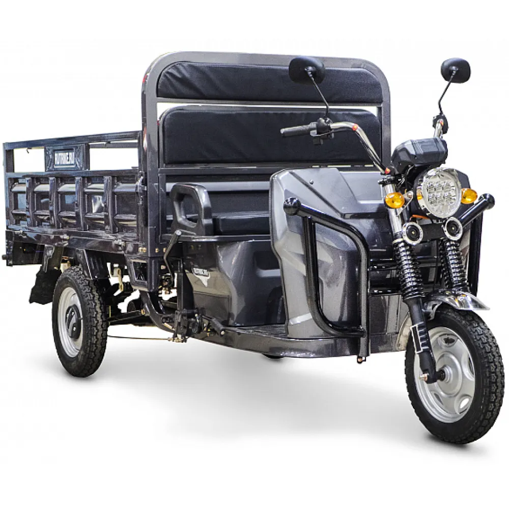Грузовой электротрицикл Rutrike D4 NEXT II 60V 1500W новинка от компании rutrike. Трицикл d4 next массой 240 кг рассчитан на грузоподъемность до 1200 кг. Электротрицикл rutrike оснащен вместительным кузовом, модель идеально подходит для фермеров и предприимчивых людей. Новый rutrike d4 next предназначен для грузовых перевозок, считается одной из надежных и удобных моделей в своем сегменте. Трицикл rutrike может использоваться при любых погодных условиях. Купить грузовой электротрицикл Rutrike D4 NEXT II 60V 1500W и комплект аккумуляторов по выгодной цене можно на нашем официальном сайте интернет-магазина. Современные трициклы rutrike d4 next оборудованы мощным электродвижком на 1500 Вт. Технические характеристики грузовых трициклов позволяют разогнаться до 25 км/час. Заряда батареи электрических грузовых моделей достаточно на 80 км пути. Трицикл оснащен зеркалами заднего вида, информационным дисплеем и вместительным кузовом. Модель отличается большой вместительностью и отличными параметрами комфорта. Электротрицикл d4 1800 дополнительно оснащен надежной платформой для ног и комфортным пассажирским сиденьем. Грузовой электротрицикл next 1800 оснащен всем необходимым, управляется просто, не требует особого обучения. Линейки rutrike считаются лучшими среди грузовых моделей.