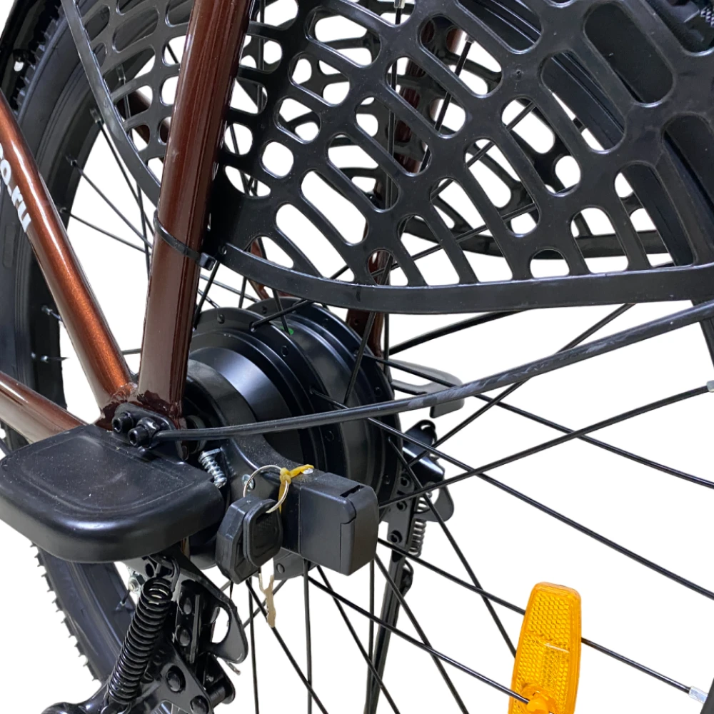Быстро набирает скорость до 40 километров в час. По размеру колеса 24 дюйма можно сказать, что он универсальный для городских дорог и бездорожья. Позволяет обладателю получать удовольствие от езды, не испытывая при этом больших физических нагрузок. Для долгой службы нужно внимательно ознакомиться с рекомендациями и правилами эксплуатации.