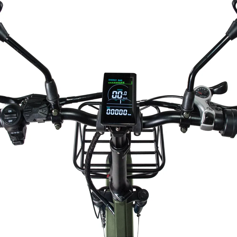 ЭЛЕКТРОВЕЛОСИПЕД MINAKO F10 хаки – выглядит круто и броско в сравнении с аналогичной техникой. При весе 27 кг модель рассчитана на грузоподъемность до 120 кг. Технические характеристики допускают эксплуатацию байка в городской и дачной местности. Для приобретения модели по приемлемой цене предлагаем сделать телефонный звонок менеджеру нашего интернет-магазина.