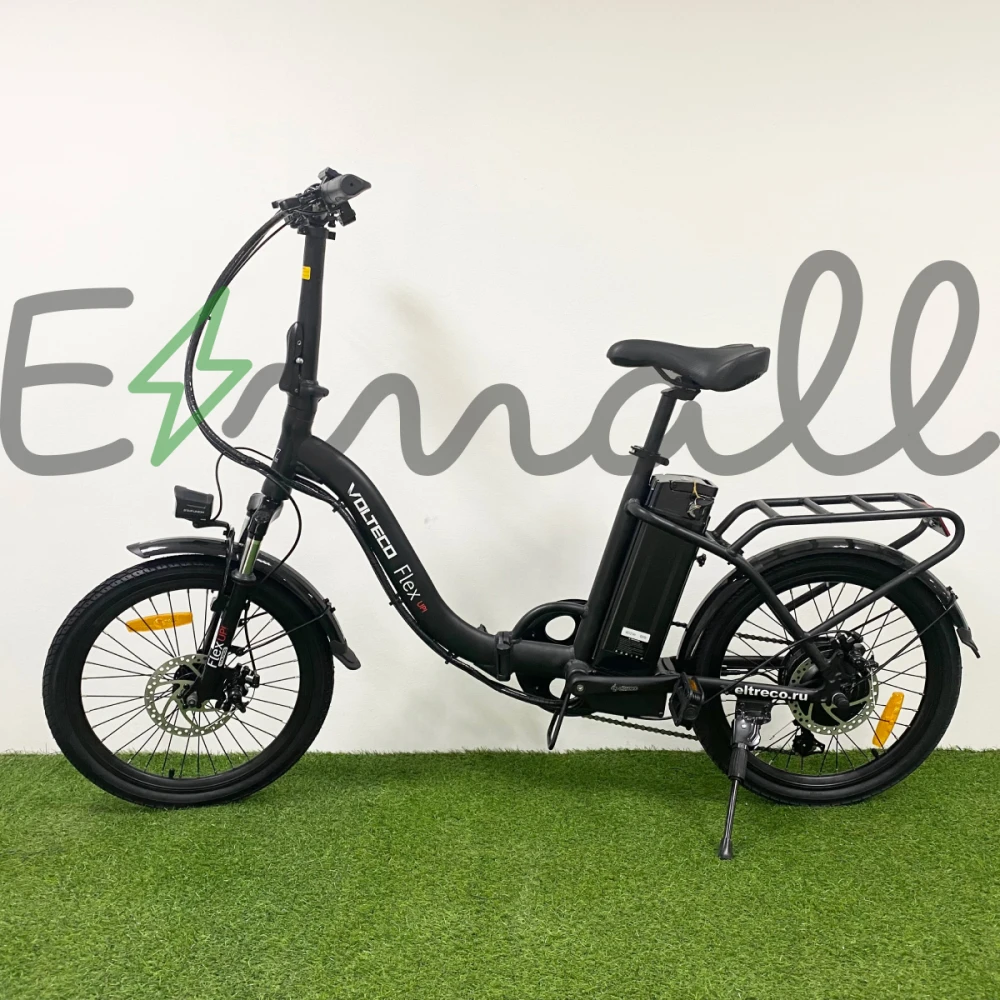 Новинка сезона – компактный и эргономичный Велогибрид VOLTECO FLEX UP в черных цветовых оттенках не зря стал лидером продаж этого месяца. Дизайн модели – универсальный, позволяет ездить на технике разновозрастной категории людей, мужчинам и женщинам. Сравнительно легкий по весу электровелосипед (23,4 кг) позволяет совершать прогулки по городу и в сельской местности. Внушительный запас хода обусловлен наличием качественной АКБ емкостью 12,5Ач Li-ion и напряжением 48В. Из особенностей модели производитель выделяет: