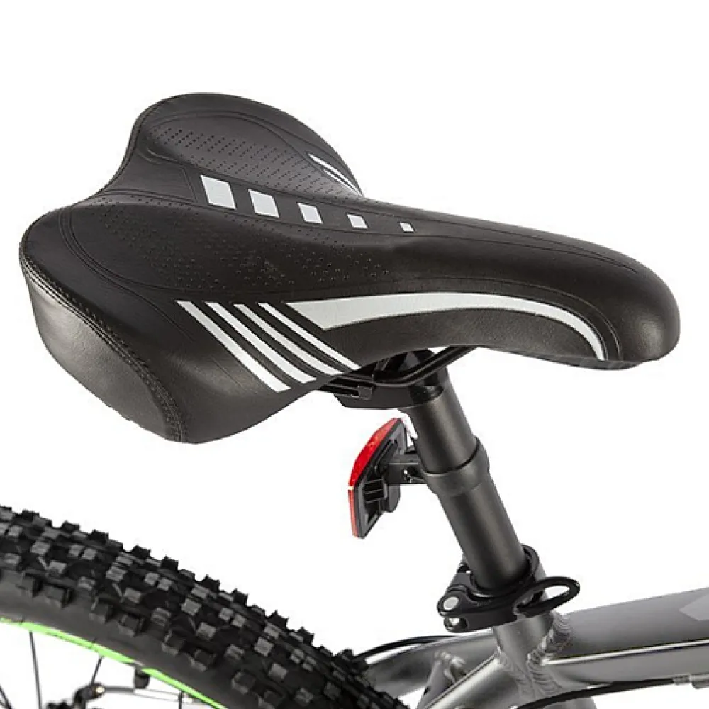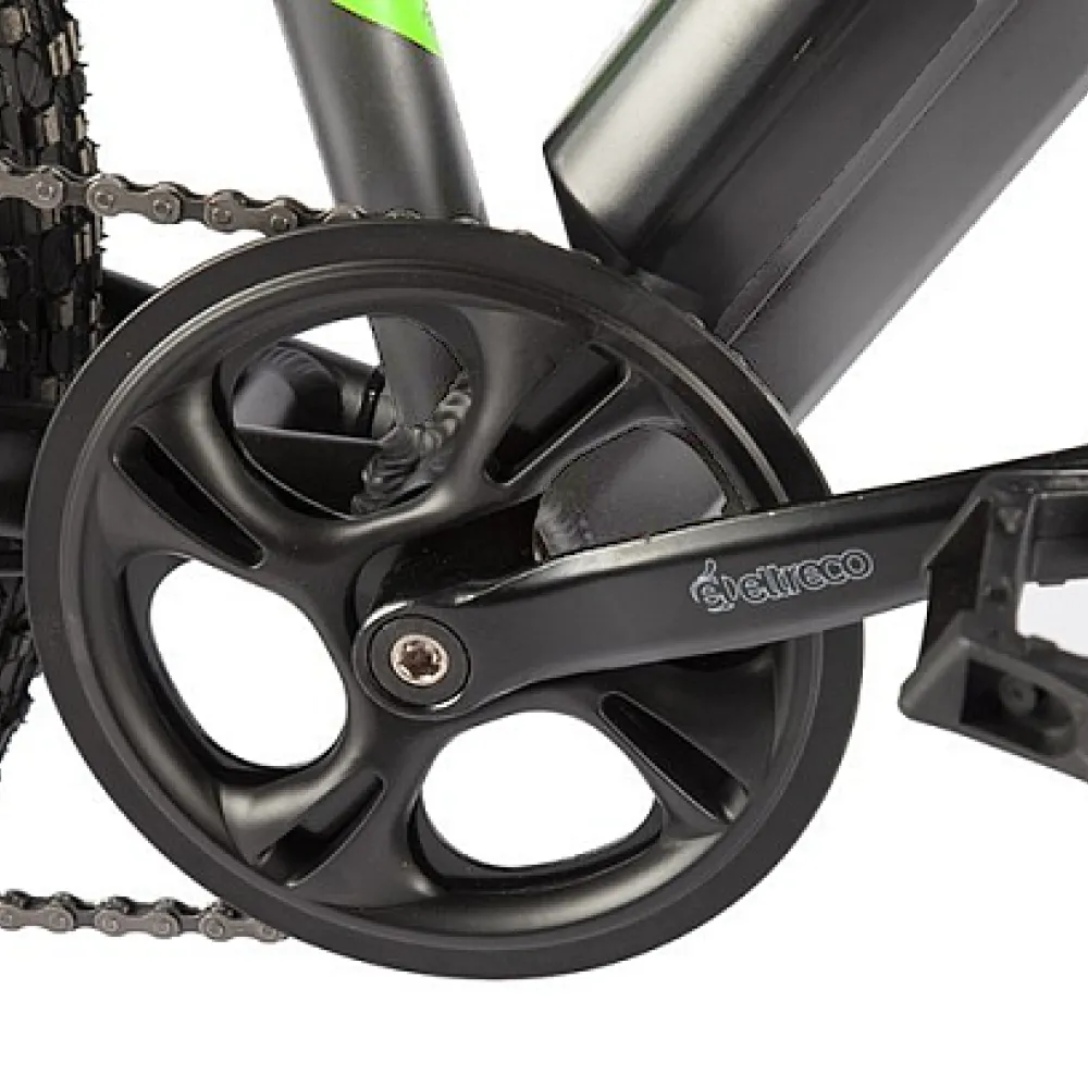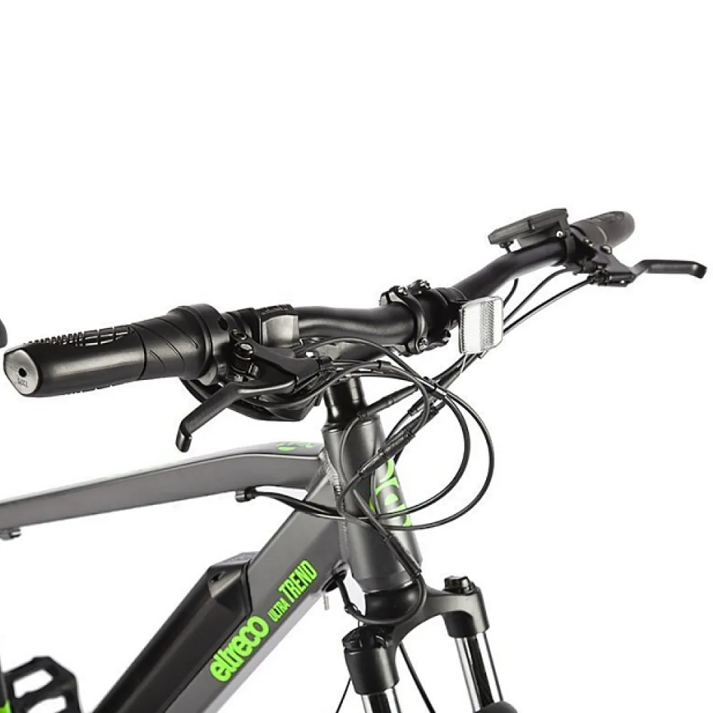 Eltreco Ultra Trend в серо-зеленой расцветке - это уникальный электровелосипед, который не только выглядит модно, но и обладает высокой производительностью и функциональностью. Стильный дизайн с очень эргономичным седлом и рулем обеспечивает дополнительный комфорт во время поездки.