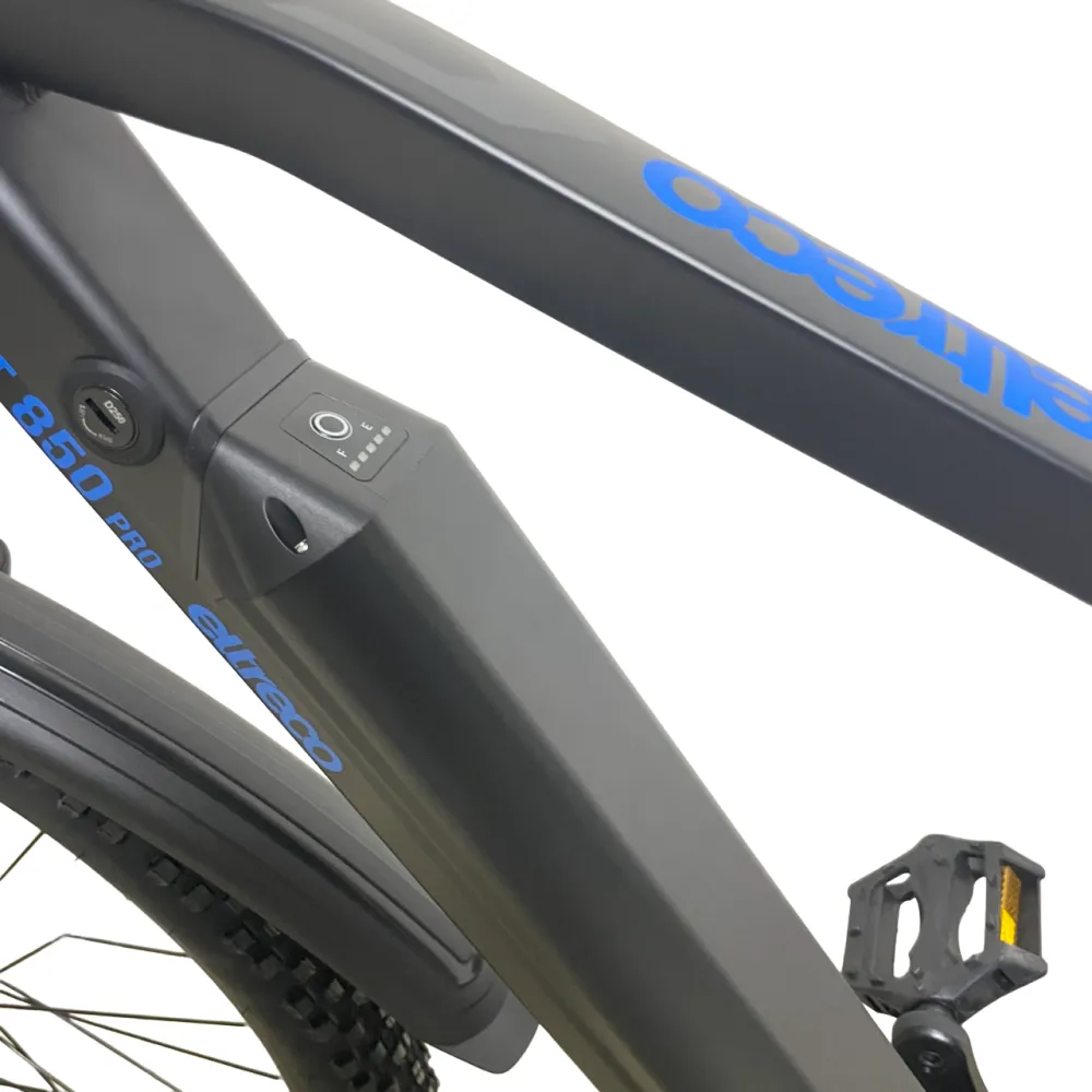 Электровелосипед Eltreco XT 850 pro имеет стильный черно-синий дизайн, который придает ему элегантный и современный вид. Он идеально подходит для городских поездок или для прогулок на природе.