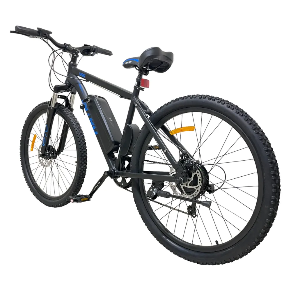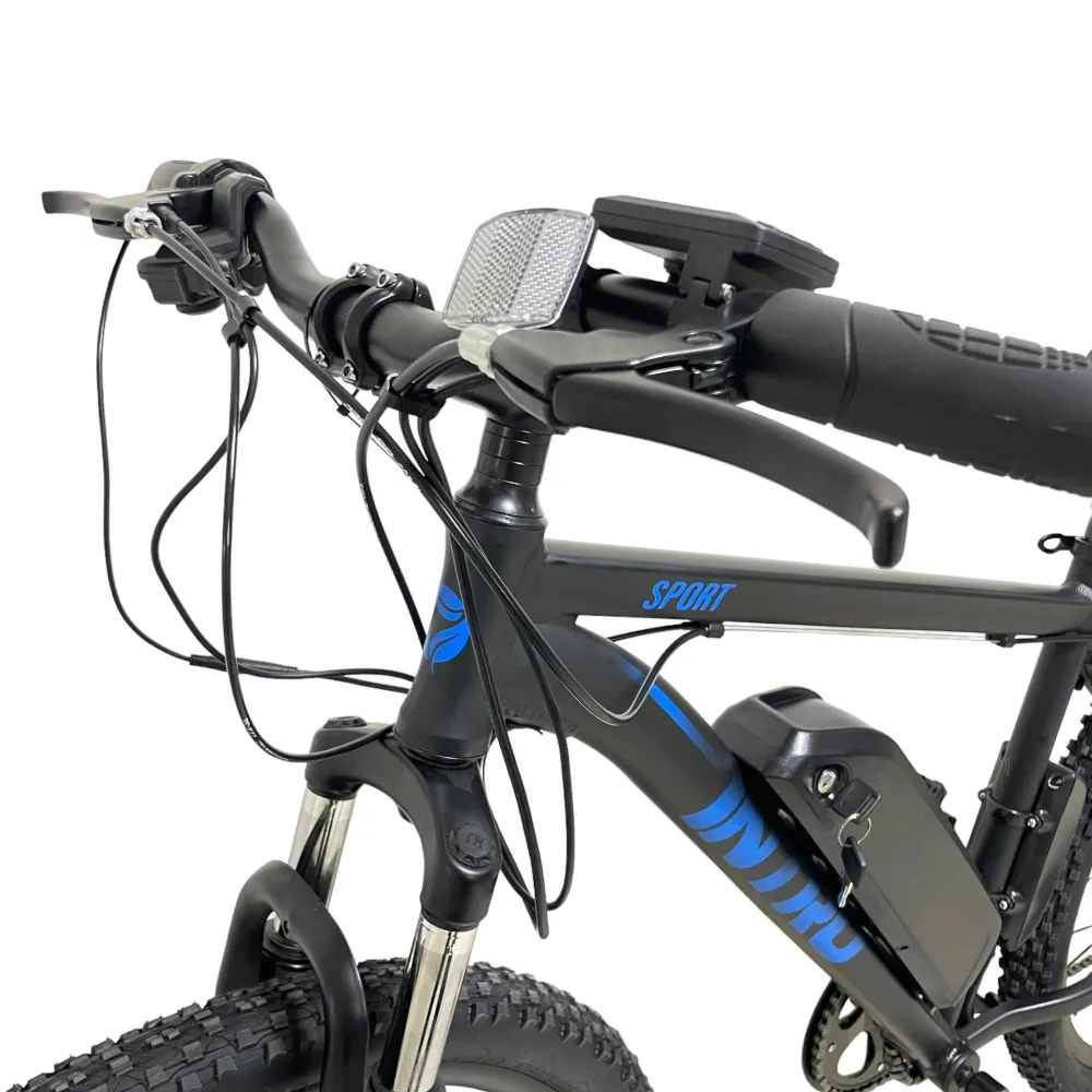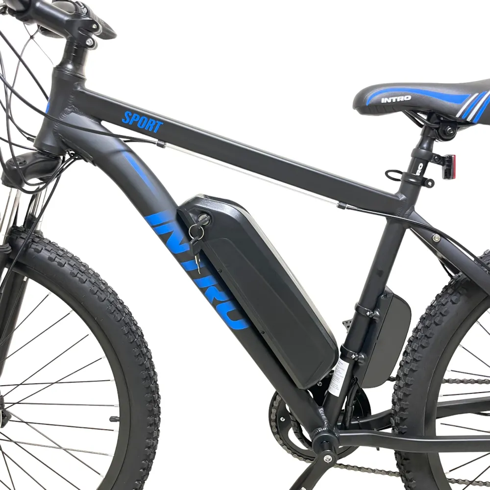 Электровелосипед INTRO Sport черно-синий - это уникальное транспортное средство, которое обеспечит вам комфортную и быструю поездку. С его характеристиками вы сможете покорить дальние расстояния без усилий.