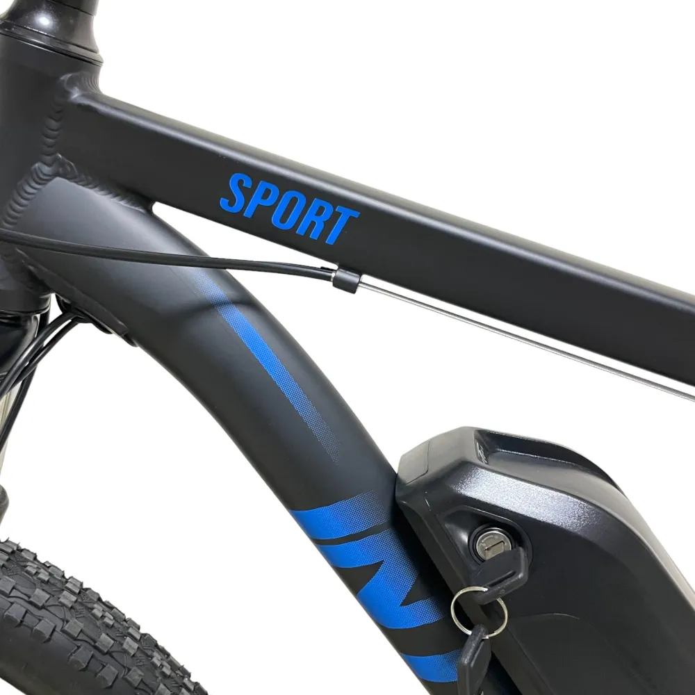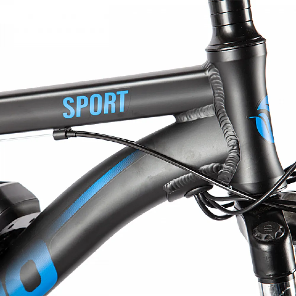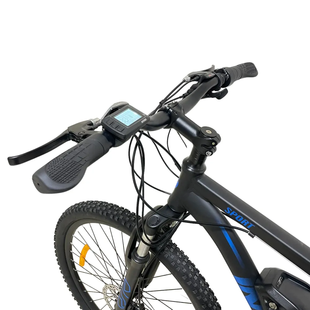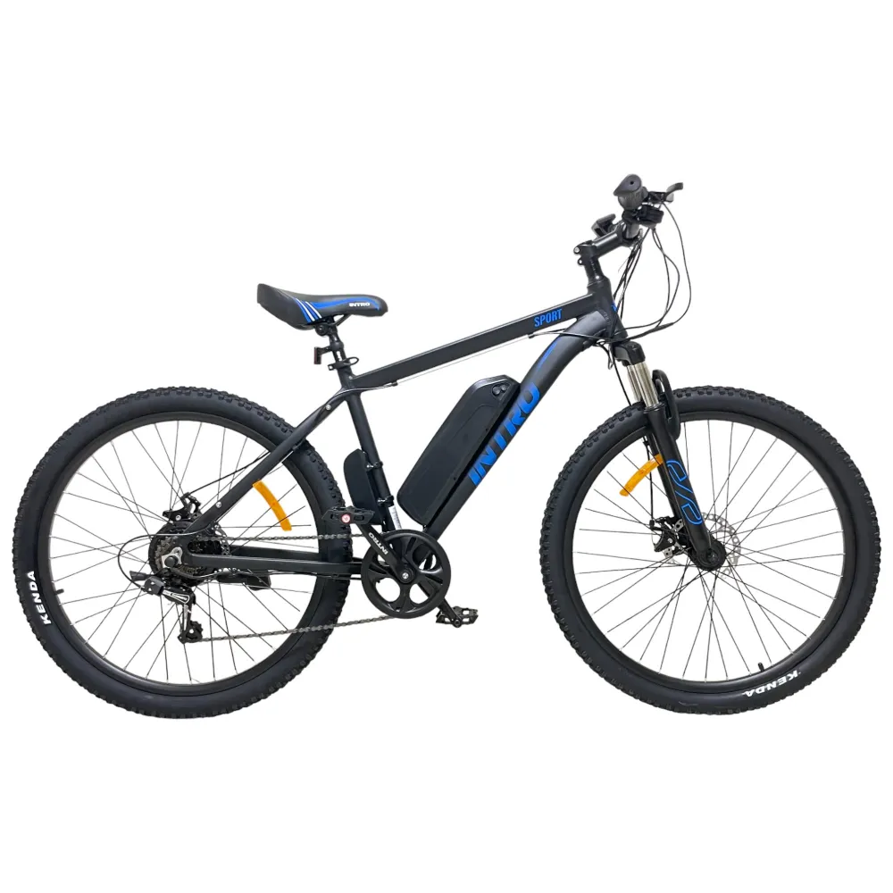 Электровелосипед INTRO Sport черно-синий - это уникальное транспортное средство, которое обеспечит вам комфортную и быструю поездку. С его характеристиками вы сможете покорить дальние расстояния без усилий.
