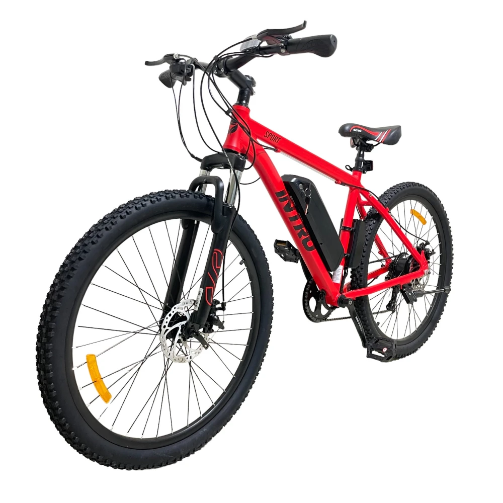 Электровелосипед INTRO Sport красного цвета - это уникальное транспортное средство, которое предлагает непревзойденный комфорт и возможность наслаждаться путешествием. С его помощью вы сможете преодолевать длинные расстояния без усталости и с легкостью.