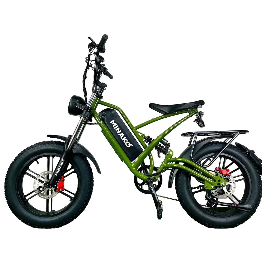 Электровелосипед Minako FOX (15Ah) с литыми дисками в цвете "Хаки" - это идеальный выбор для тех, кто ценит стиль, производительность и надежность.