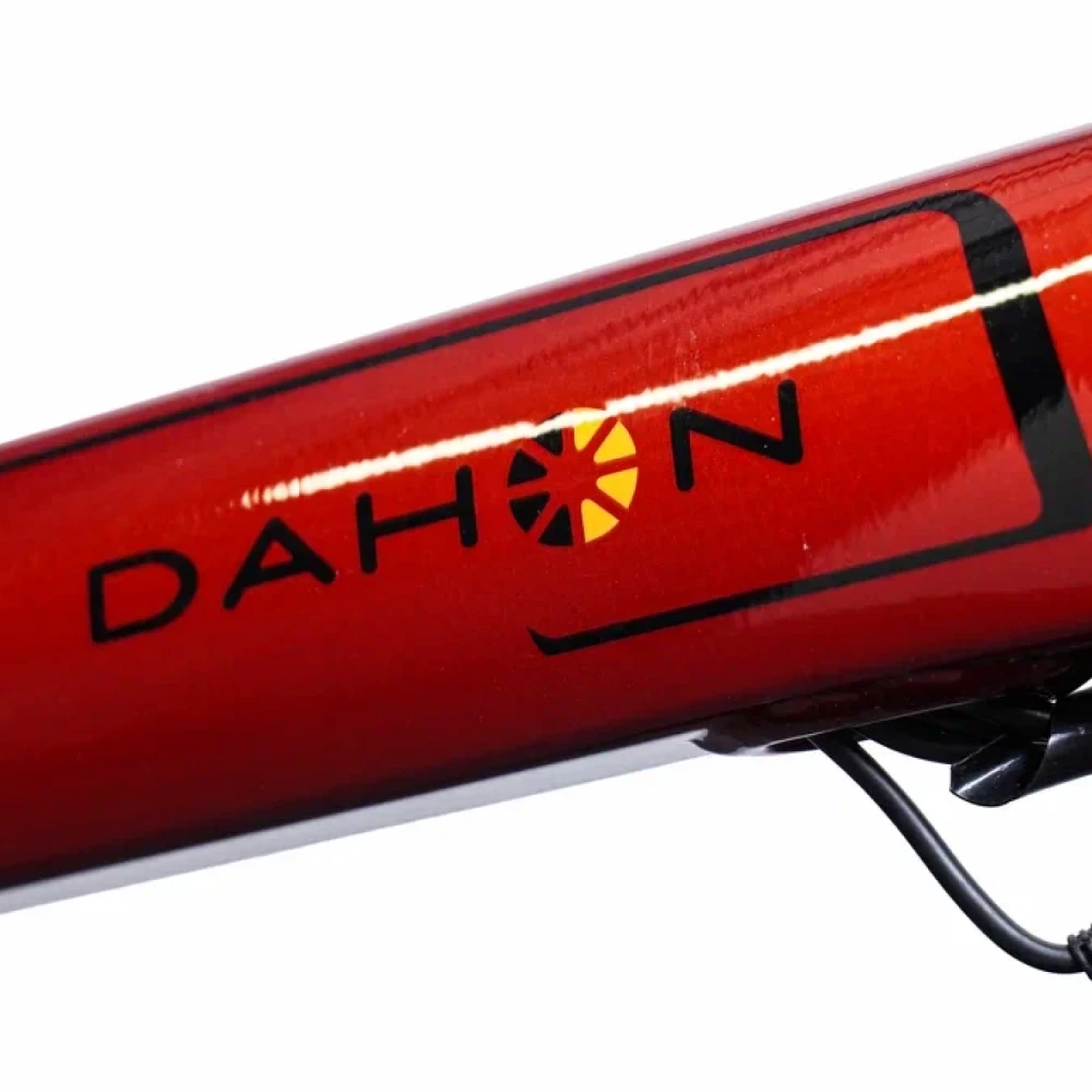 Складной электровелосипед DAHON UNIO E20 в красном цвете представляет собой легкий (12,2 кг) городской вариант с 20-дюймовыми колесами, подходящий для райдеров ростом 148-190 см. Алюминиевая рама обеспечивает прочность и компактность, делая его идеальным для ежедневных поездок и транспортировки в общественном транспорте. Модель сочетает механическую простоту с электрической поддержкой, фокусируясь на портативности без излишеств мощного мотора.
