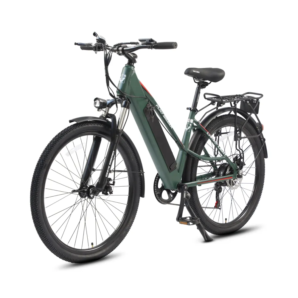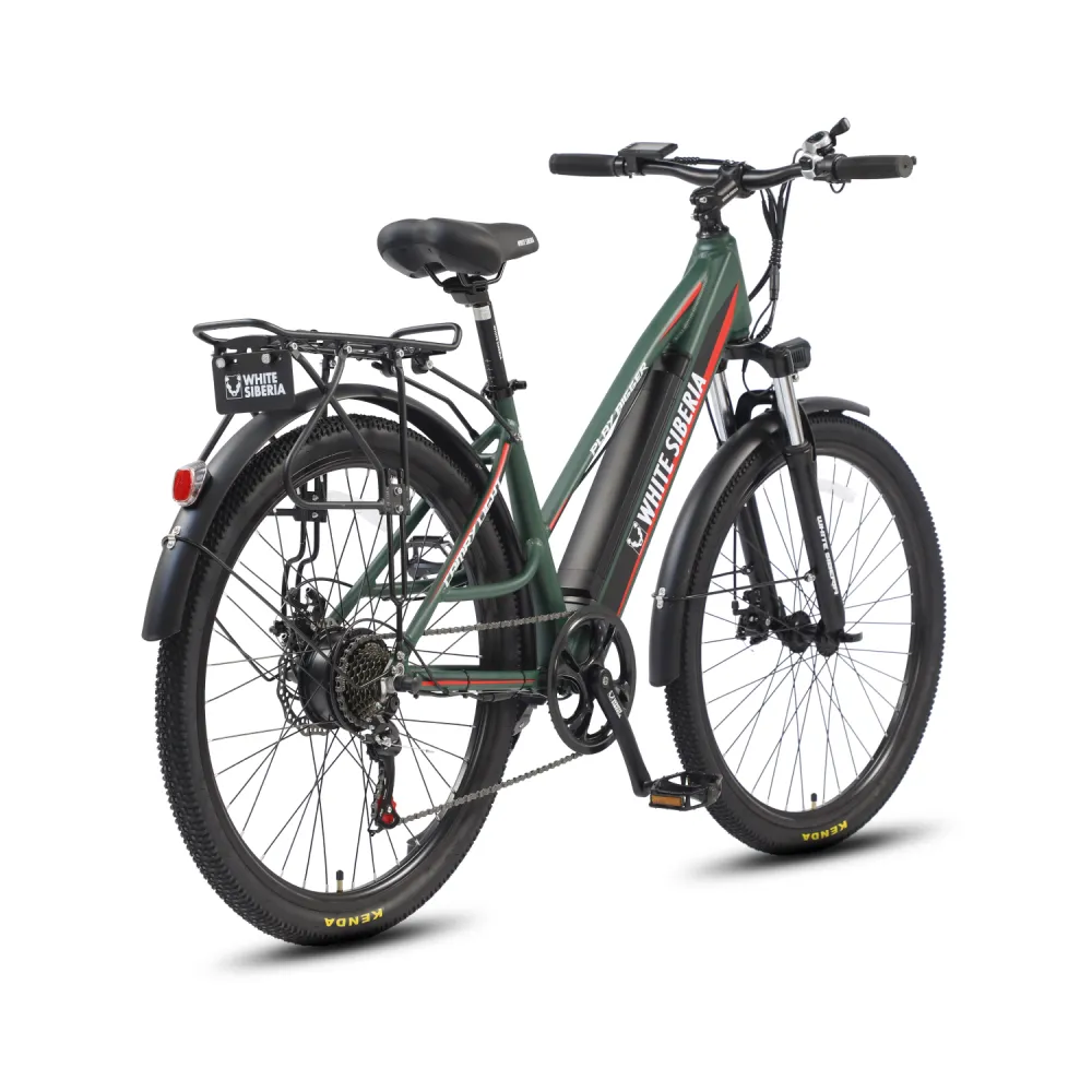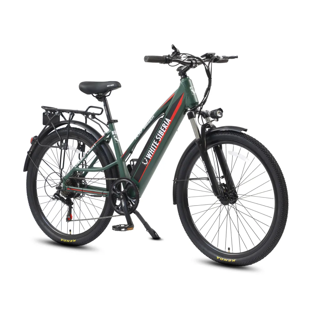 Электровелосипед WHITE SIBERIA CAMRY LIGHT 500W в матовом зеленом цвете – мечта каждого активного райдера. Техника весом 23 кг изготовлена из высокопрочного авиаалюминия прочного, надежного и долговечного. Модель считается универсальной, может использоваться в качестве каждодневного вида транспорта и для езды на дальние расстояния, в хорошую и плохую погоду, по ровным дорогам и неровностям. Удобная геометрия рамы не вызывает проблем с посадкой у представительниц слабого пола. Оснащенность тс электромотором на 500 Вт и емкой батареей дает возможность комфортного продолжительного путешествия. Удобное регулируемое седло повторяет анатомические части тела ездока, снижает нагрузку на позвоночник. Информационный компьютер предоставляет полезную для райдера информацию. Колесная часть – качественная и накатистая. 27,5 дюймовые колеса с широкими покрышками, маневренные и скоростные, отлично сцепляются с разными видами грунта. Оснащенность электровелосипеда крыльями увеличивает срок службы техники. Наличие заднего багажника дает возможности перевозки небольших грузов. Для заказа электровелосипеда выгодно предлагаем связаться с нами в телефонном или онлайн-режиме.