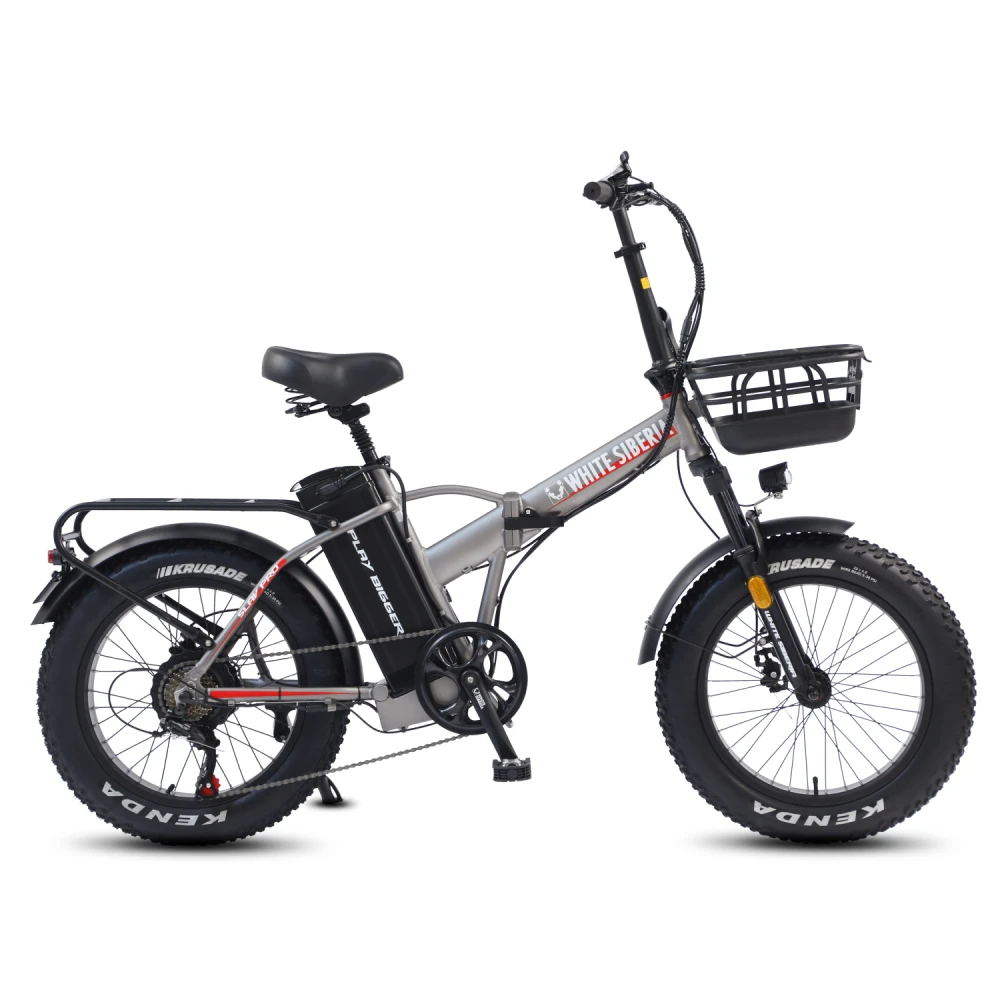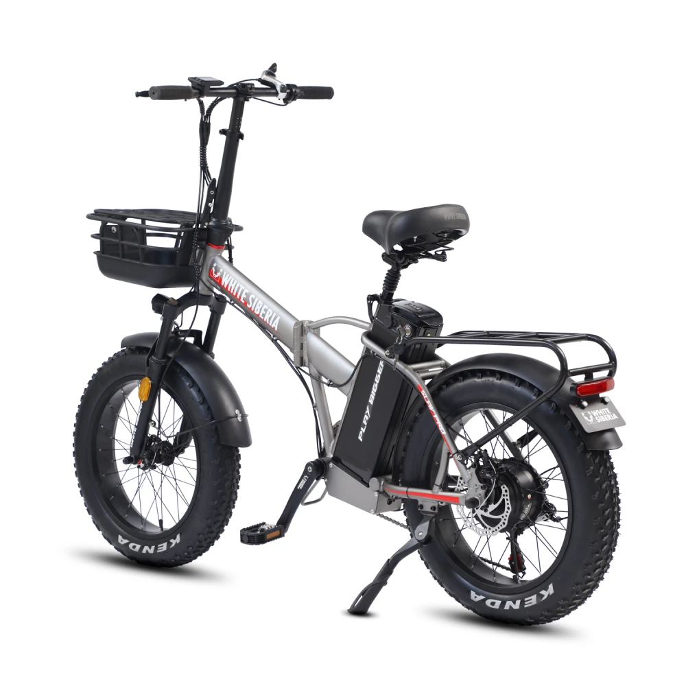 Электровелосипед WHITE SIBERIA SLAV PRO 1000W в матовом сером цвете – компактная эргономичная техника станет преданным другом на ежедневных прогулках. Байк выглядит современно и привлекательно. Идеально подходит для эксплуатации в пределах города и пригорода. Для приобретения модели по лучшей стоимости, получения бесплатной консультации предлагаем связаться с нами по телефону или в онлайн-режиме. Электробайк оборудован мощным электродвижком на 1000 Вт. Рама – усиленная, облегченная из авиаалюминия. Батарея с параметрами 48V 13A размещена за подседельной частью в защитном блоке, исключающем попадание влаги, механическое воздействие. Седло – удобное, регулируемое, повторяет анатомические части тела. Наличие передней корзины высвобождает руки, увеличивает степень удобства при езде в магазин. Безопасность и исключение непредвиденных ситуаций обеспечены информационным дисплеем, который информирует о скоростном режиме, дальности хода и степени зарядки АКБ. Главным преимуществом облегченной модели (30кг) является возможность трансформации). В сложенном состоянии техника приобретает минималистичные размеры, удобные для хранения в гараже и транспортировке в машине.