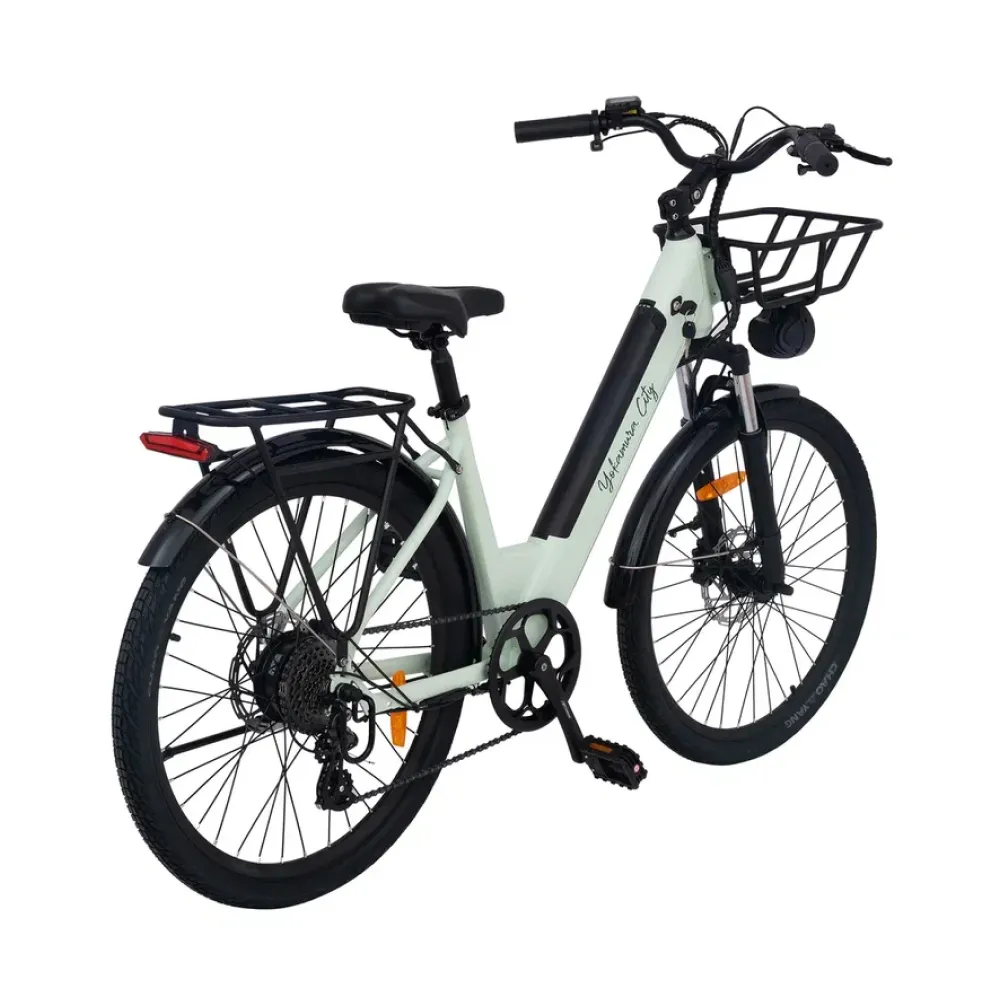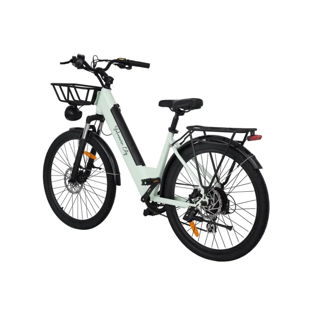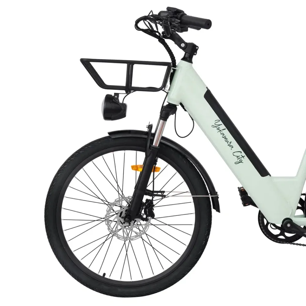 Передний амортизатор позволяет комфортно преодолевать неровности дороги, делая поездки по паркам особенно приятными. Практичная корзина спереди и багажник сзади добавляют удобства для перевозки вещей. Yokamura City Menthol — идеальный выбор для тех, кто ценит стиль, комфорт и функциональность в одном велосипеде.