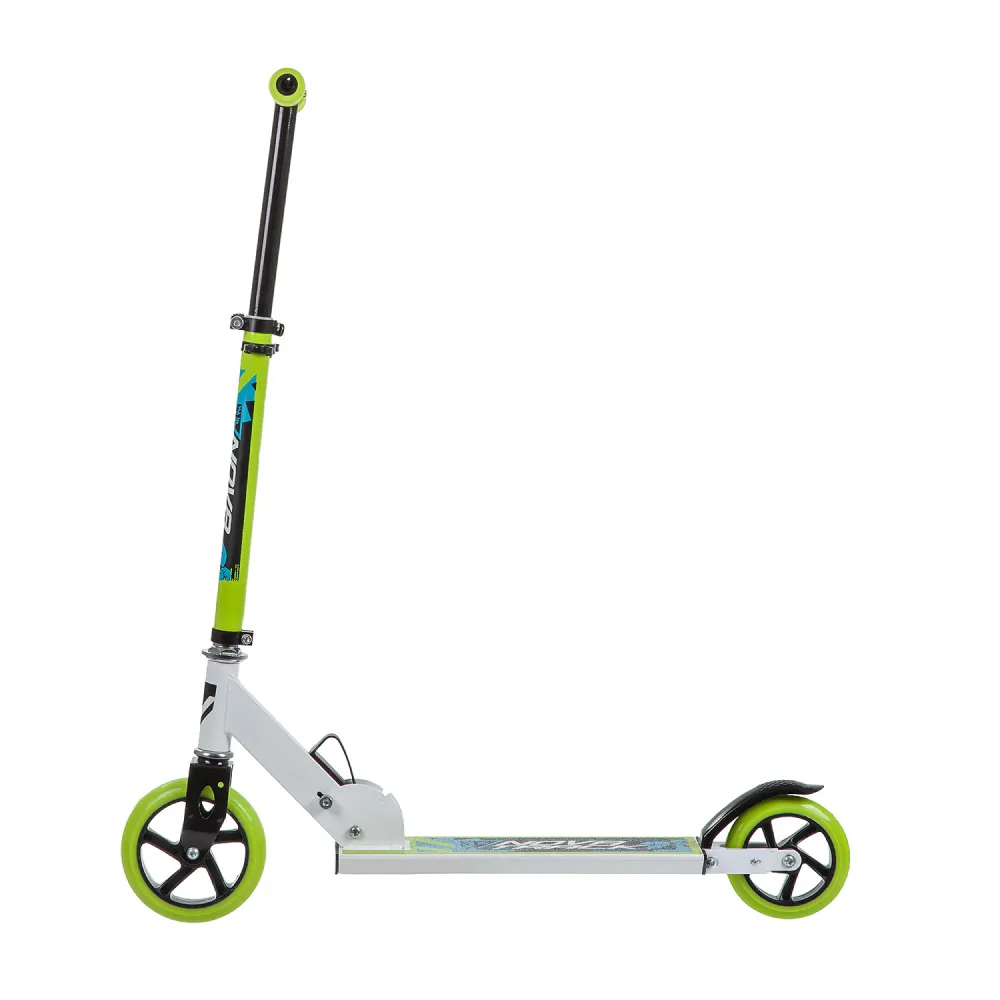 Сзади установлен ножной тормоз, который позволяет быстро остановиться при необходимости. Переднее колесо диаметром 145 мм и заднее колесо диаметром 125 мм обеспечивают отличную маневренность и устойчивость на любых поверхностях. Бело-зеленый дизайн добавляет яркости и стиля, делая каждую поездку увлекательной и безопасной.