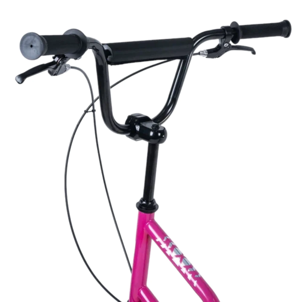 Tech Team Super Jet 700 2024 года в ярком розовом цвете - это городской самокат с уникальным дизайном, напоминающим велосипед. Большое переднее колесо диаметром 406 мм и заднее колесо диаметром 305 мм обеспечивают отличную устойчивость и комфорт при езде. Ободные тормоза и велосипедный руль с двумя ручками тормоза обеспечивают надежное торможение и удобное управление. Максимальная нагрузка до 100 кг позволяет использовать самокат людям разного веса. Рама из алюминия делает самокат легким и прочным, его вес составляет всего 8,1 кг. Этот самокат идеально подходит для активных городских поездок.