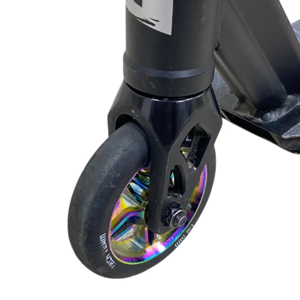 Трюковой самокат Tech Team Comrade - это идеальный выбор для начинающих и опытных райдеров, стремящихся к новым достижениям в мире трюков и катания. С высотой руля от деки в 590 мм, он обеспечивает удобную посадку для наездников ростом от 120 до 165 см. Конструкция самоката выполнена из прочного алюминия ALU 6061, что гарантирует надежность и долговечность. Самокат оснащен высококлассными подшипниками ABEC 7 Carbon, которые обеспечивают плавный и быстрый катание. Его вес всего 3,35 кг делает его легким и маневренным, а максимальная нагрузка до 100 кг позволяет использовать его как подросткам, так и взрослым. С диаметром колес 110 мм и материалом из полиуретана, самокат обеспечивает отличное сцепление и комфорт при катании. Задний ножной тормоз обеспечивает надежное торможение, в то время как система компрессии HIC позволяет легко выполнять трюки. Размер деки составляет 510 мм в длину и 115 мм в ширину, что обеспечивает достаточное пространство для ног. Ширина руля в 540 мм добавляет стабильности во время выполнения трюков. Обратите внимание, что самокат не складной, что делает его более прочным и надежным для активного катания. Tech Team Comrade — это самокат, который вдохновит вас на новые свершения! Самокат использовался в тест-драйве, поэтому имеет царапины на корпусе, которые не влияют на его техническое состояние. Это идеальный выбор для тех, кто хочет попробовать свои силы в трюковом катании без больших затрат.