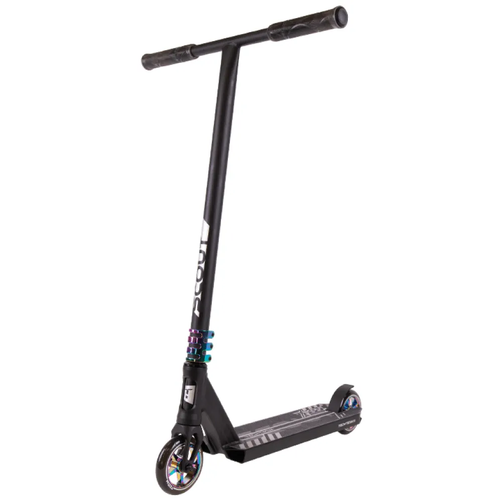 Техника представлена облегченной конструкцией. Весит 3,8 кг. Минималистичная и эргономичная, послушная в управлении. Т-образная часть руля изготовлена из хроммолибденовой стали. Высота руля от зажима и от поверхности составляет 61,5см и 85 см соответственно. Ширина – 54 см и диаметр 34,9 мм удобные для хвата, не провоцируют усталости при длительной эксплуатации техники. Дека размерами 49х12 см изготовлена из высокопрочного алюминиевого сплава, нескользящая, исключает случайные действия в виде соскальзывания стоп. Оснащенность модели конкейвом обеспечивает безопасность, позволяет контролировать собственные действия во время прыжков, выполнения других элементов трюкачества. Накатистые полиуретановые колеса с сердечником 110х24мм оснащены современными подшипниками, обеспечивают максимальный разгон, важный для каждого трюкача. Для заказа трюкового самоката предлагаем связаться с нашим менеджером.