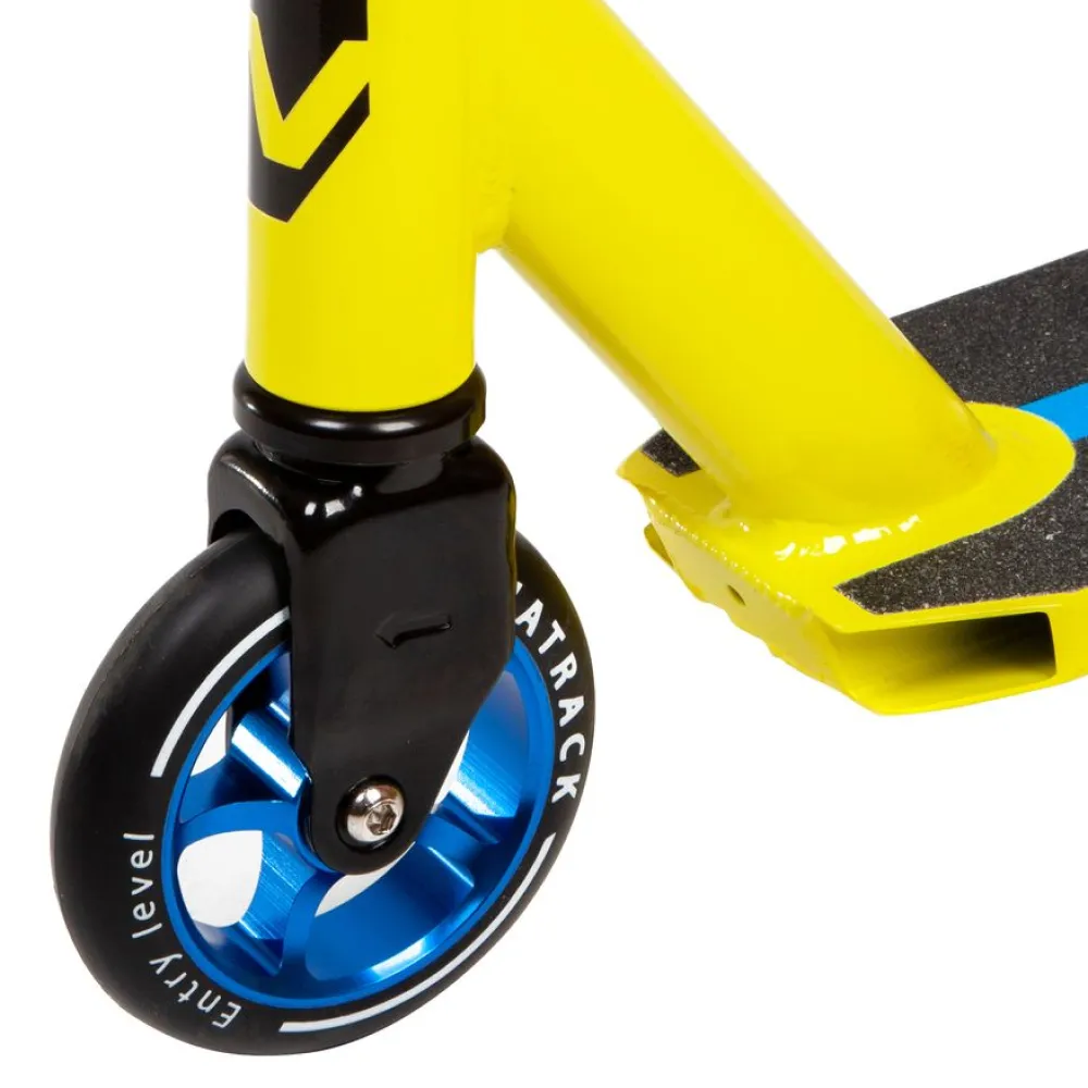 Трюковый самокат Novatrack WOLF 40 черно-лимонный — это идеальный выбор для тех, кто хочет выделяться на улице и в скейт-парке. С максимальной нагрузкой до 100 кг, этот самокат подходит для райдеров от 8 лет и старше. Стальная вилка и подшипники класса ABEC-7 обеспечивают долговечность и плавность хода. Дека шириной 10 см с покрытием «шкурка» гарантирует отличное сцепление и контроль при выполнении трюков. Алюминиевые обода и полиуретановые колеса диаметром 110 мм добавляют устойчивость и комфорт. Резьбовая рулевая система и высота руля 83 см делают управление самокатом легким и точным. Задний ножной тормоз обеспечивает безопасность и мгновенную остановку. Novatrack WOLF 40 черно-лимонный — для смелых и уверенных в себе райдеров!