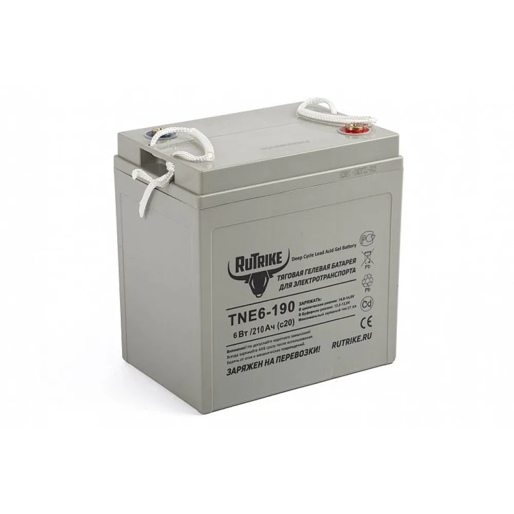Тяговый свинцово-кислотный аккумулятор RuTrike TNE6-190 (6V210A/H C3) – тяговая батарея, изготовленная по современной технологии. Понравилась отечественным пользователям и клиентам из других стран. Экологичное, безопасное и надежное устройство рассчитано на 700 циклов заряда/разряда. При этом срок службы составляет год.