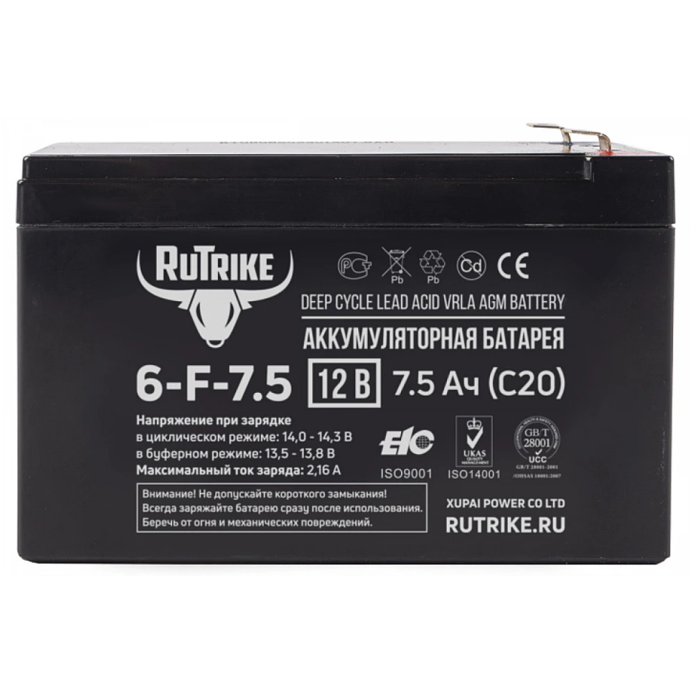 Аккумулятор RuTrike 6-F-7,5 (12V7,5A/H C20)