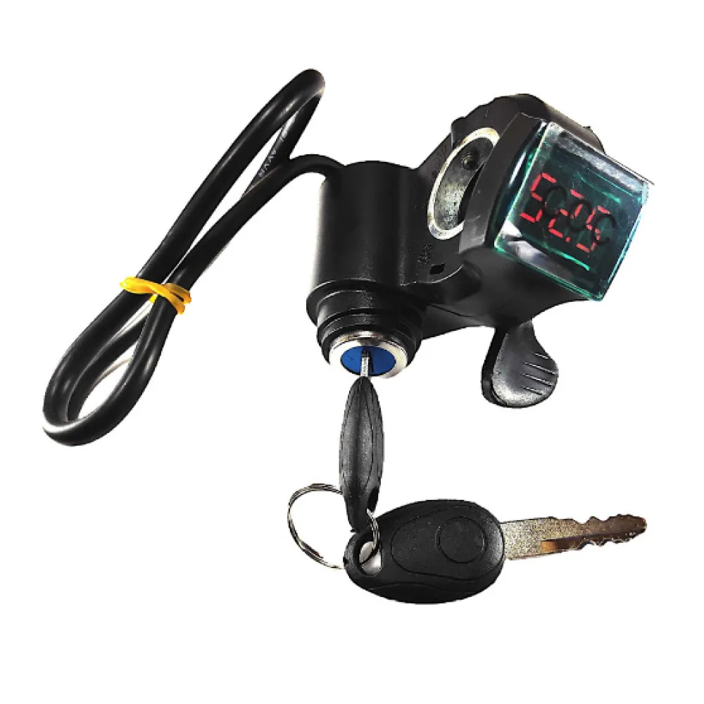 Вольтметр с замком зажигания и курком для электросамокатов (кабель 2 метра)